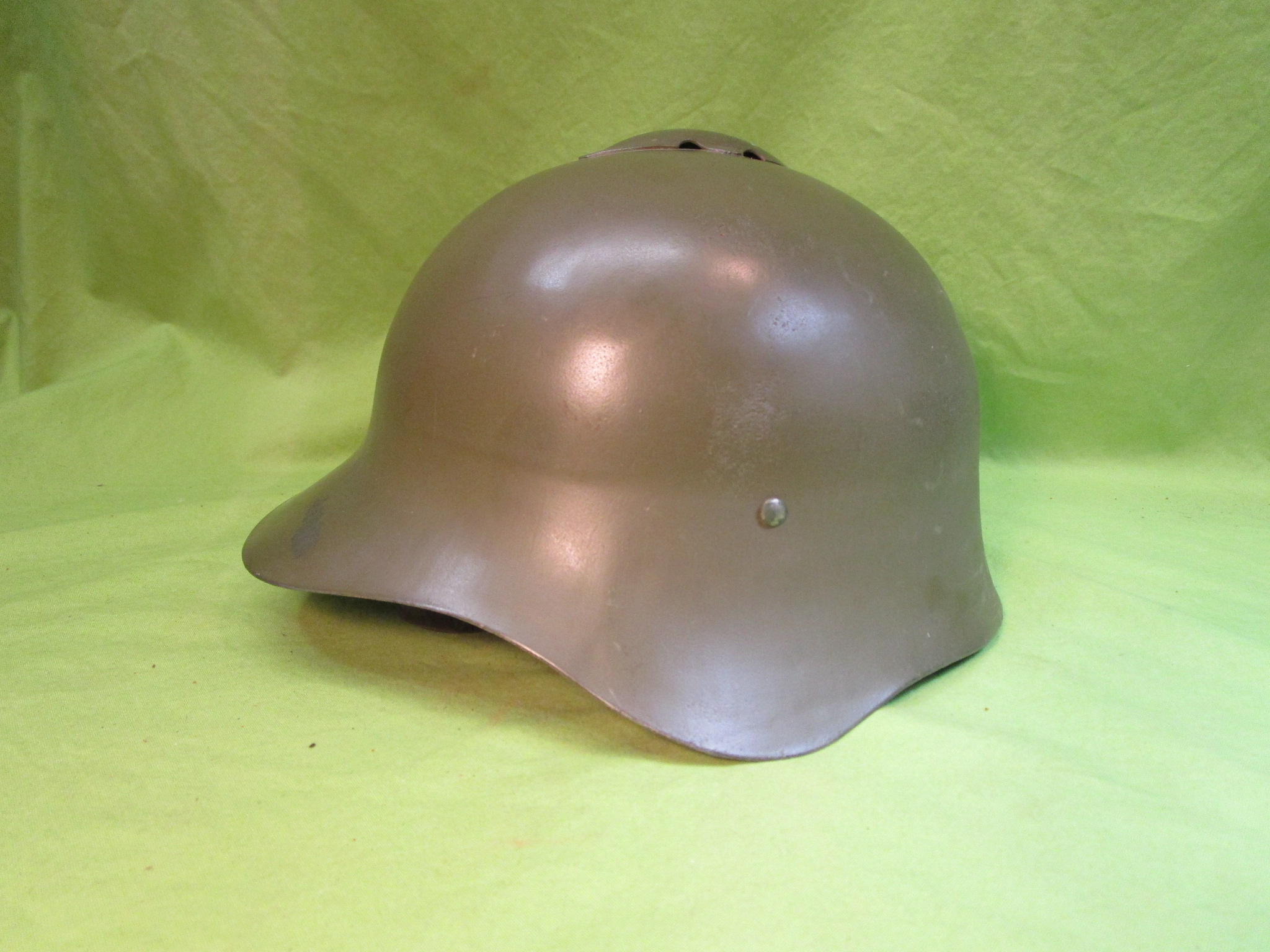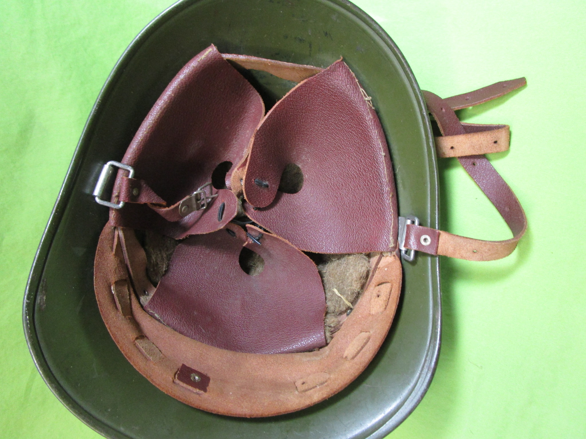 This is a good looking M36 Russian. It was repainted after the war with a correct type early light green. The liner and strap are WWII Italian; probably collector installed. This is a great collection filler for the money.
