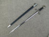 This one is right out of the woodwork here in SE Michigan. The knife is excellent with very nice fittings and a blade. The scabbard is also very good, as is the frog. It looks good and will display fine. |