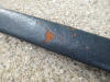 This is a good solid example showing honest age and use. The blade has been sharpened but not too terribly. The fittings are very good. The scabbard is good with original paint. The leather is still good and solid. OOPS, the back grip is broken. This one will display well with your other HJ stuff.