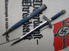 This is an attractive sword with an excellent Luftwaffe marked blade. The fittings show age and patina but are very good. The leather is very good showing some age and use with a few light nicks. The blade fits well into the scabbard and is original to it. Overall, this is a really nice example, which, I think, looks better in person than in the photos.