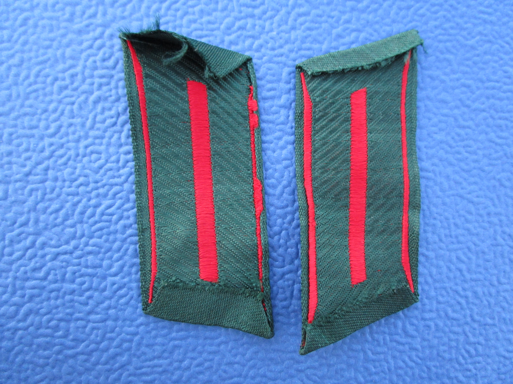 These are right out of the woodwork from a vet's souvenir box. One is just slightly longer than the other, but everything else is identical. I think one is from a tunic and the other from an over coat. They are excellent and will display fine.