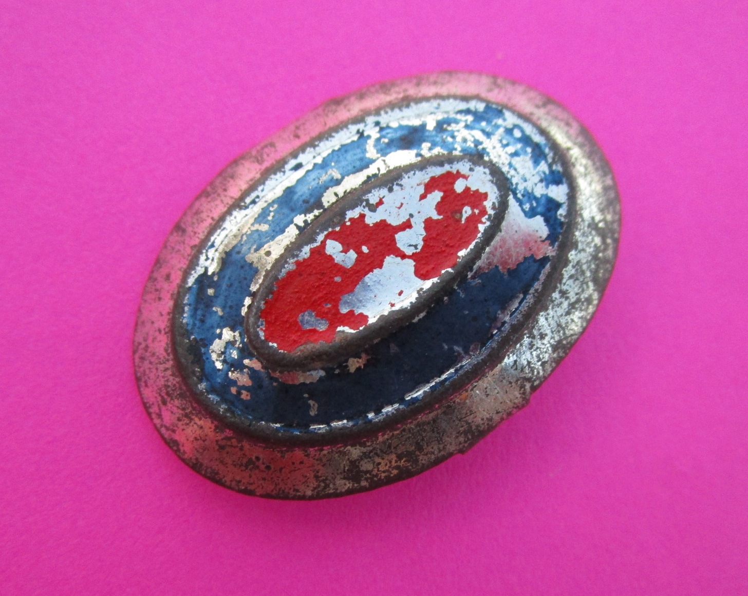 This one shows some age and missing paint, but is a rare piece of insignia.