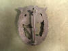 This is a nice original example, that shows honest age, right out of the woodwork in Toledo, Ohio The finish shows oxidation with silver highlights. The pin and catch are both solid and sound. The backing plate is still, there which is always a good thing. Overall, it's a very honest example.