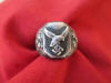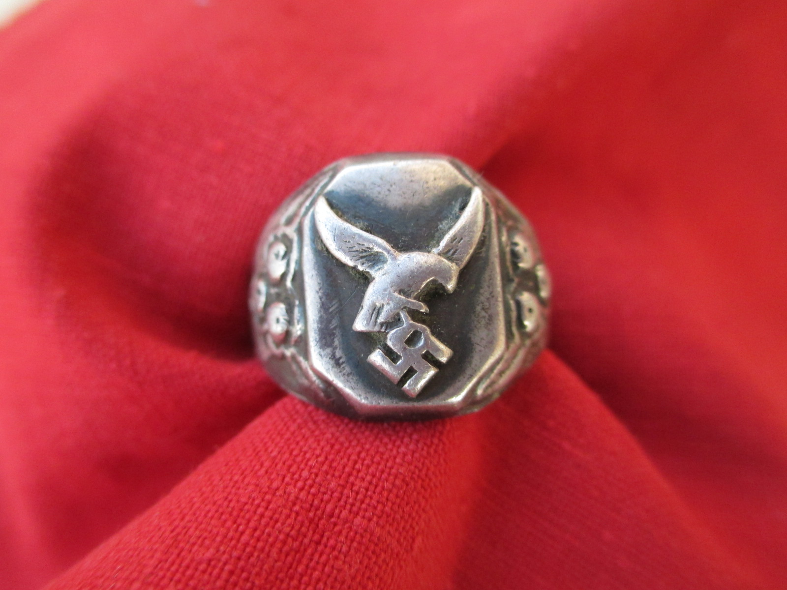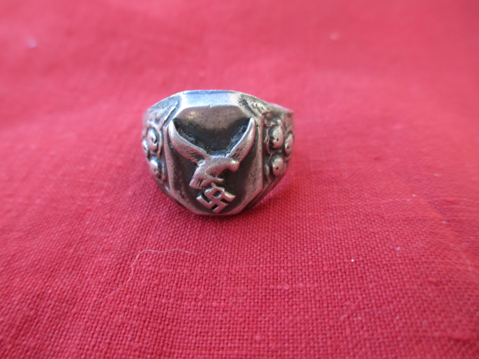 This is from an old collection of WWII rings in Detroit. It is made of some type of war-time metal, and shows good honest age and use. These were private purchased items popular with soldiers during WWII. It displays very well with nice details, and will look great in your collection.