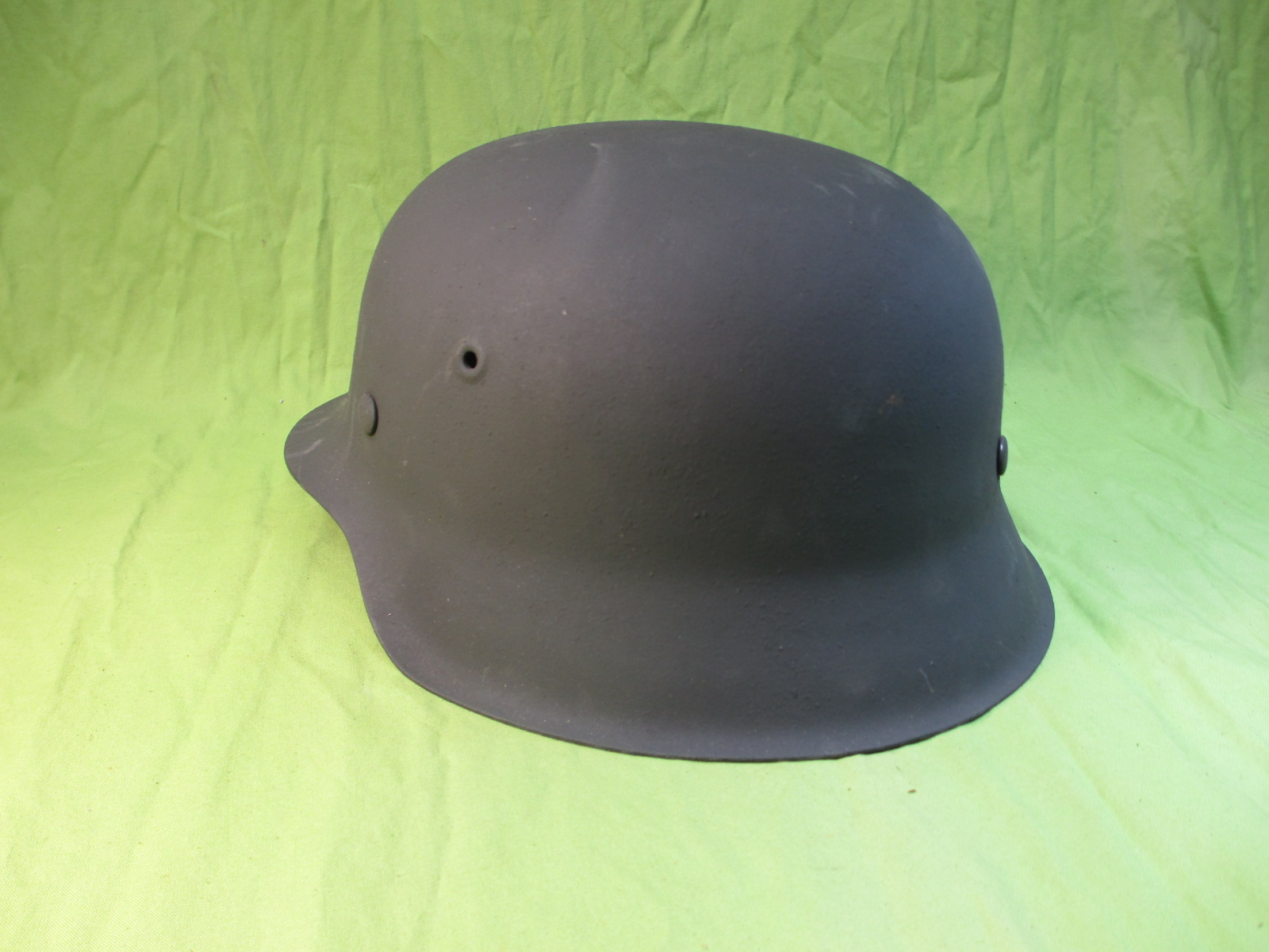 This is an original M42 helmet shell restored by German Helmets Inc. with the correct colored paint. The shell is solid and has no cracks, rust or dents. The scuffs are minor, and should wipe away. The interior is an unused top quality, replica liner. It looks very good, and is great for your display or reenacting.