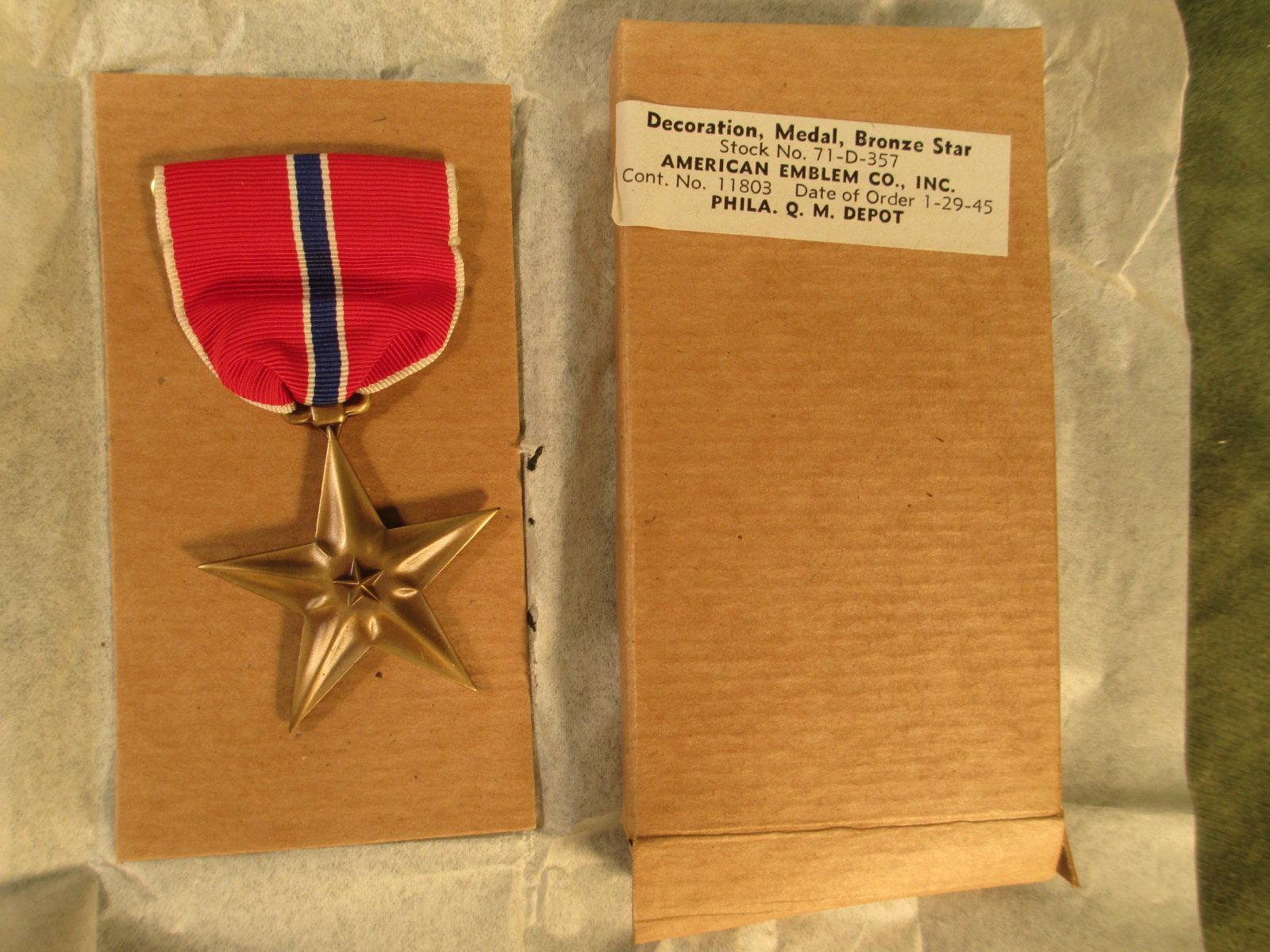 Bronze Star Medal New In Box WWII Dated with Sewn Broach |