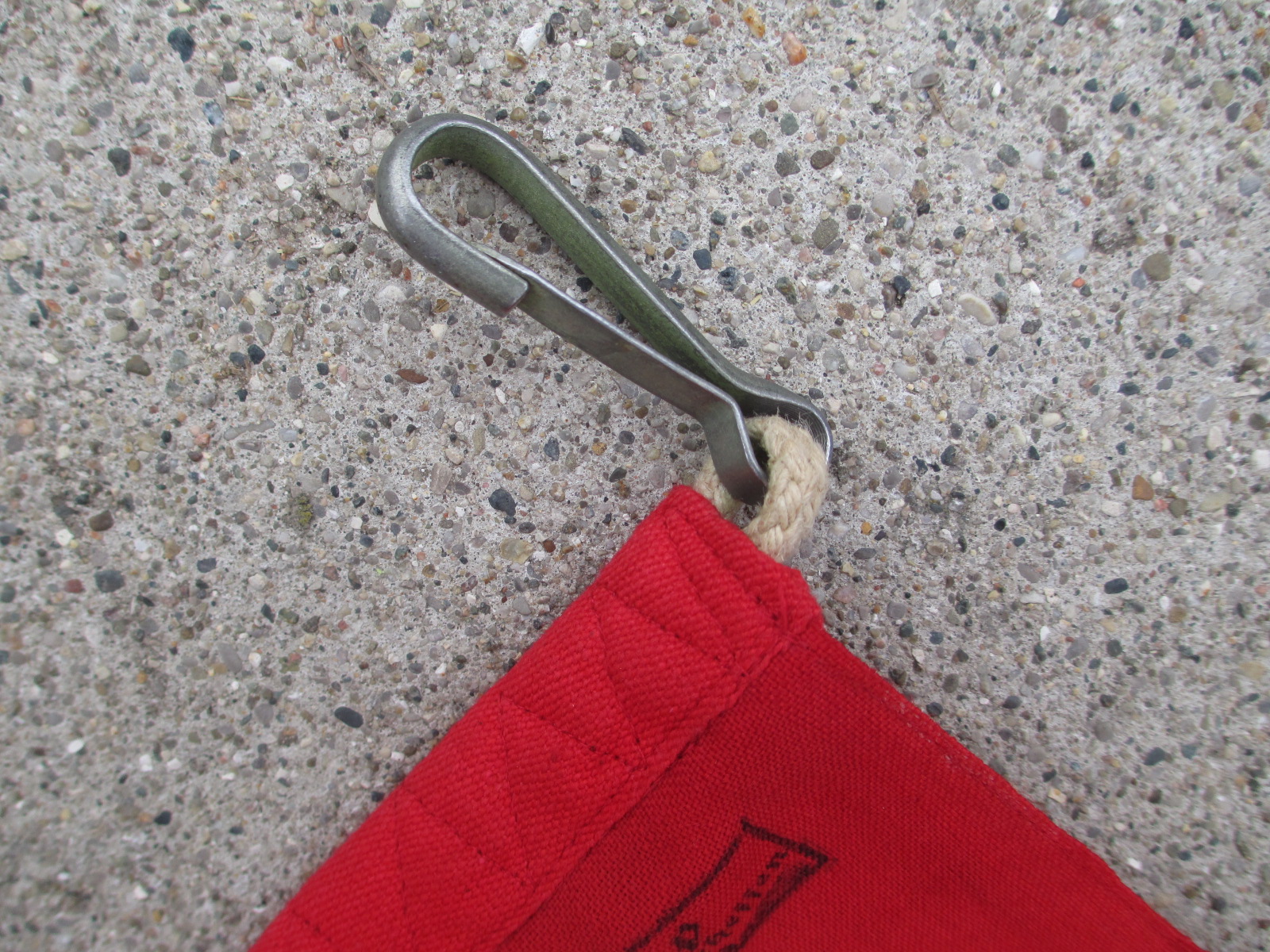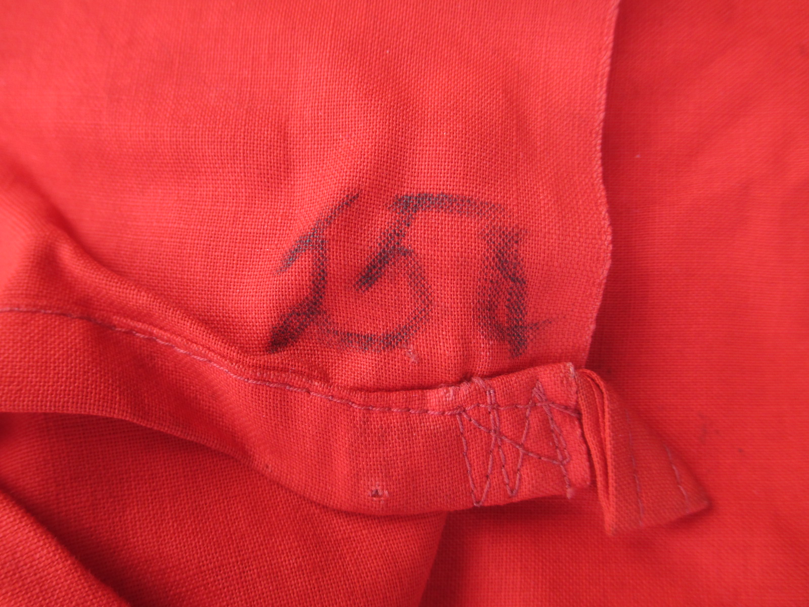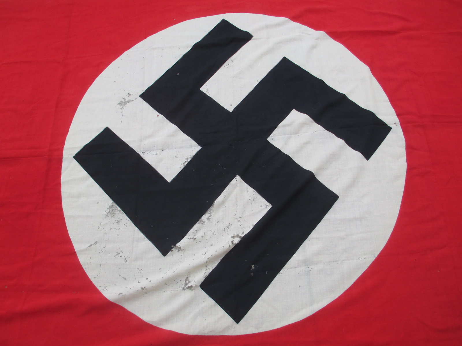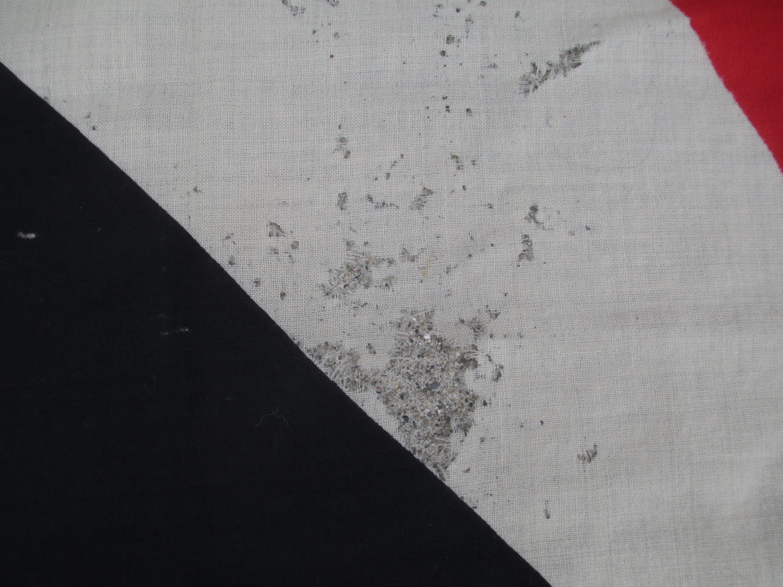 This is a very attractive flag with bright color as and perfect ropes but with some moth damage. It has a very cool NSDAP property stamp in one corner. Sorry, but the moths had a few lunches here with this one mostly in the white sections, but it still looks good. It's still very cool and cheap too.
