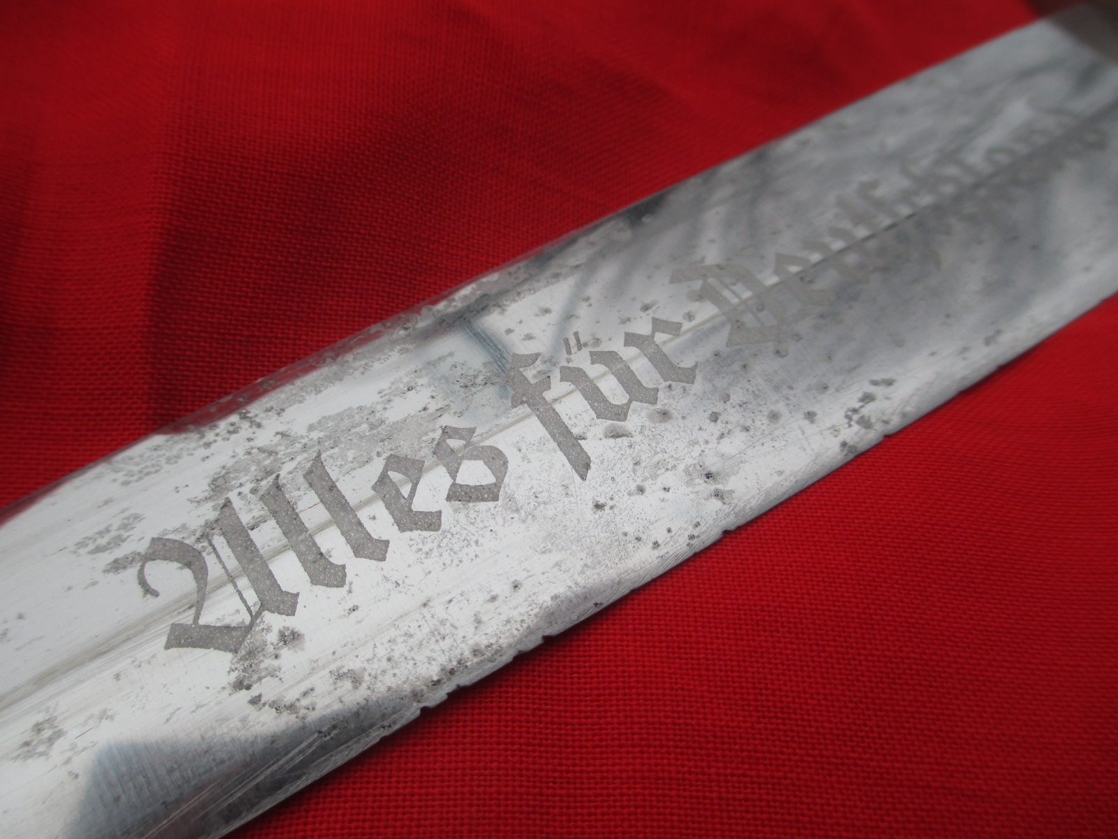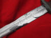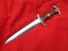 This is an honest good looking dagger. The blade is very good but has been lightly sharpened. The handle is also good. The fittings show age but are also good. Sorry, no scabbard on this one, but it's cheap. It's the perfect economy display example.